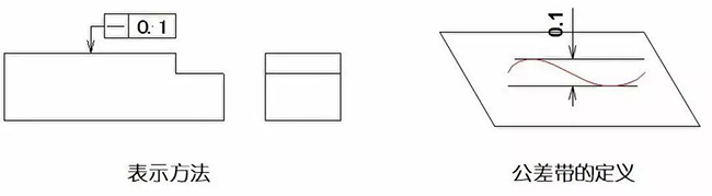 示例1:在給定平面內(nèi),公差帶必須在距離為0.1mm的兩平行直線間的區(qū)域。