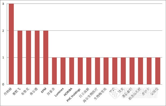 從領(lǐng)域上看,并購交易主要集中在生命科學(xué)領(lǐng)域,總計達(dá)到11筆;分析儀器次之,交易數(shù)量累計7筆。上半年,丹納赫集團(tuán)(含貝克曼庫爾特)的收購數(shù)量暫時領(lǐng)先。進(jìn)口品牌仍是資本市場的主導(dǎo)者,但萊伯泰科、海爾生物醫(yī)療等國產(chǎn)企業(yè)也有不俗表現(xiàn)。