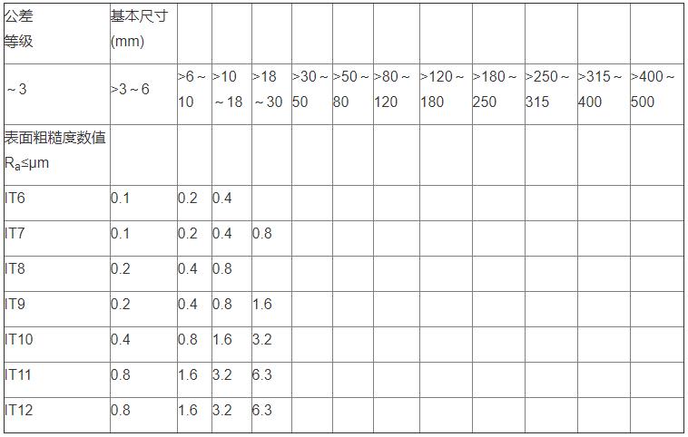 表1 公差等級(jí)與表面粗糙度值(用于精密機(jī)械)