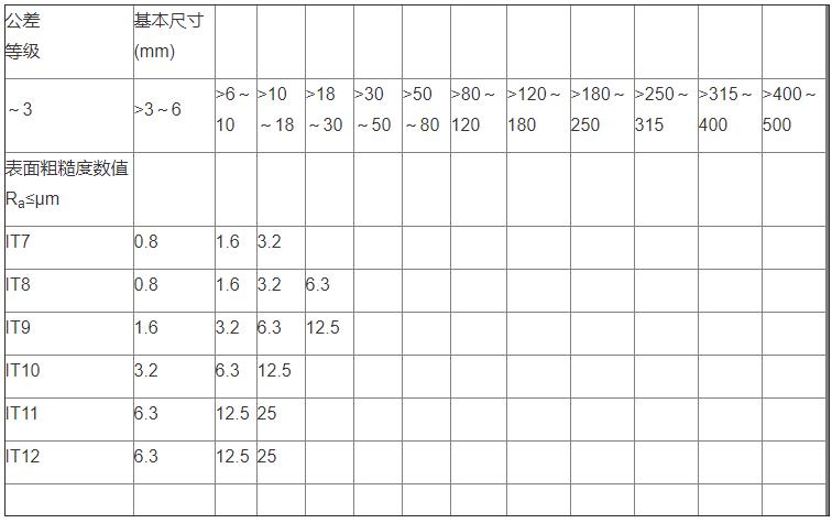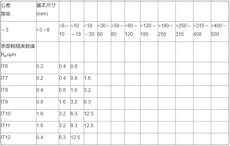 表3 公差等級(jí)與表面粗糙度值(用于通用機(jī)械)