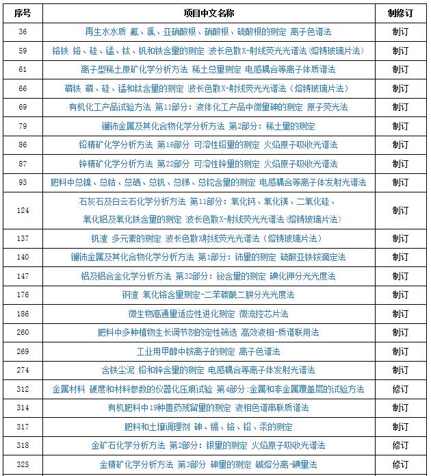 擬立項(xiàng)的國(guó)家標(biāo)準(zhǔn)中有35項(xiàng)為儀器分析方法,涉及離子色譜、ICP-MS、ICP-OES、原子熒光、氣相色譜、液質(zhì)聯(lián)用、微流控芯片等。清單如下:
