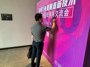 上午9時(shí)許,會(huì)場(chǎng)已準(zhǔn)備就緒,各家經(jīng)銷商代表陸續(xù)到場(chǎng)簽到,并在會(huì)議簽名墻上簽名留念。