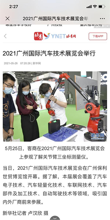 鴻華科技有限公司展位及展機(jī)-法國科瑞朗Kreon關(guān)節(jié)臂三坐標(biāo)測量儀備受青睞,吸引不少客商駐足垂詢,并得到新華網(wǎng)、中華人民共和國中央人民政府網(wǎng)、搜狐網(wǎng)、北青網(wǎng)等知名媒體關(guān)注及入鏡報道。